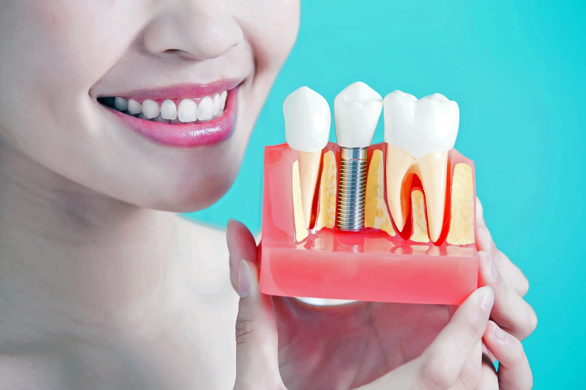 インプラントとは、顎の骨に人工歯根となる金属を埋め込み、その金属を土台にして、天然の歯と同じような人工の歯を取り付ける治療方法です。